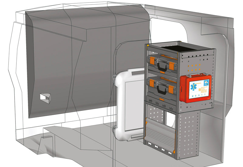 Configuratie mobila, integrata, cu carcase pentru piese mici si carucioare!