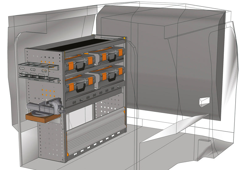 Configuratie mobila, integrata, cu carcase pentru piese mici si carucioare!Marimi rafturi: FI 1009 M1* - L=1016 D=365...